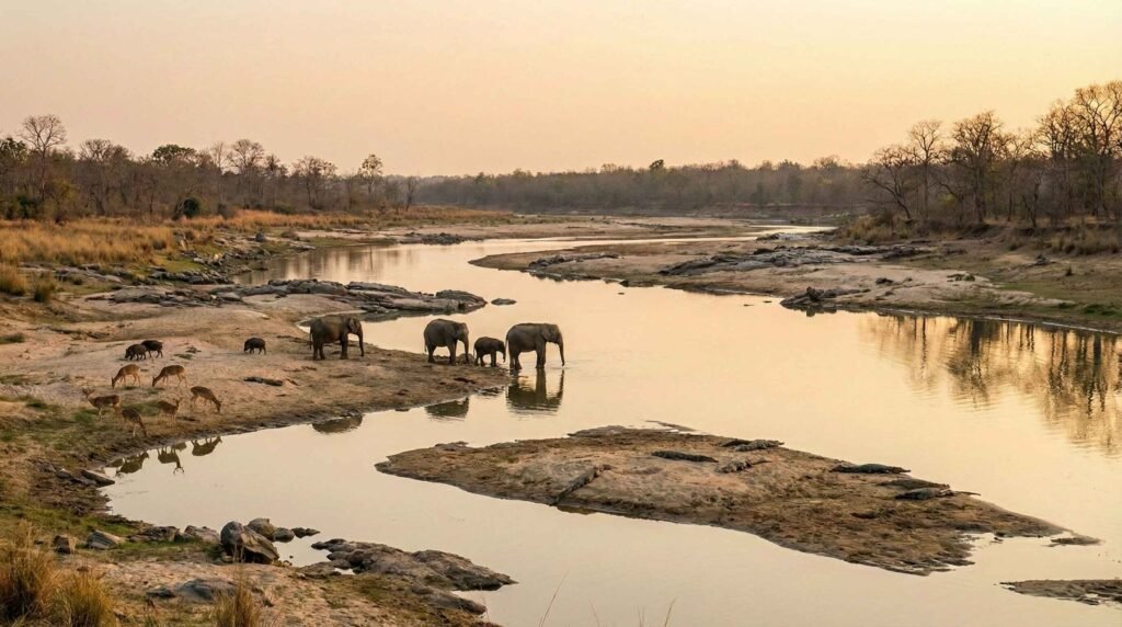 Rivers shape India’s ecosystems. Seasonal floods create fertile grasslands, replenish wetlands, and support dense forests. These habitats attract large herbivores, which in turn support predators like tigers. Rhinos depend heavily on riverine grasslands and marshes for food and water.